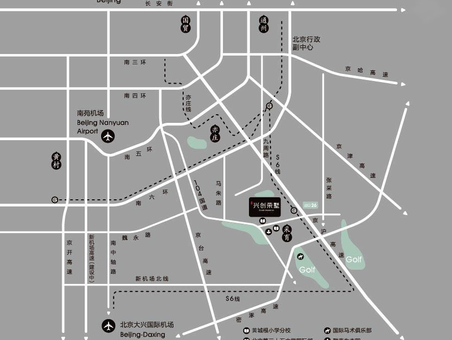 兴创荣墅位于北京大兴采育,京津冀交汇区域,拥有四横四纵一轨的交通网络,坐拥亦庄、黄村和北京副中心等新城配套。轨道交通S6线,北起首都机场,南至新机场,途经通州副中心、亦庄等,终点设在新机场,未来与地铁4号线、6号线等十余条线路换乘,开通后将成为贯通南北的轨道交通大动脉。